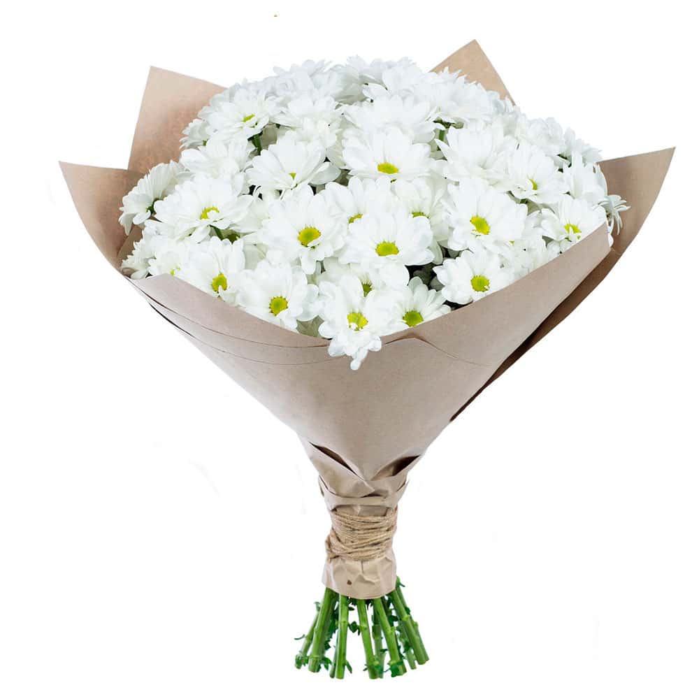 Хризантема кустовая белая. Упаковка (лента, пленка, крафт, сетка, пленка матовая)