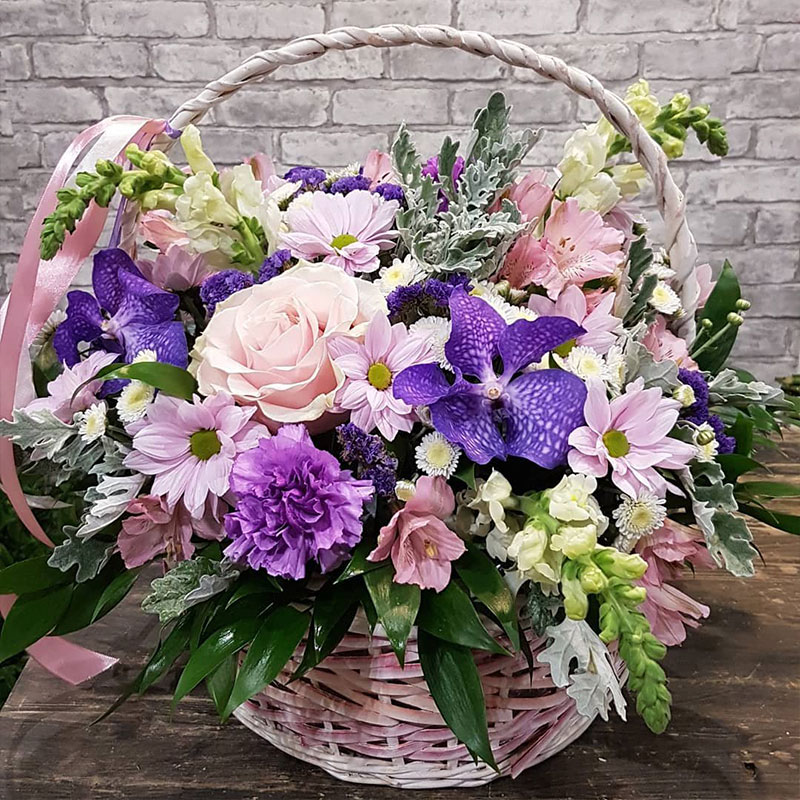 | Состав | Орхидеи, Розы, Хризантемы, Эвкалипт |