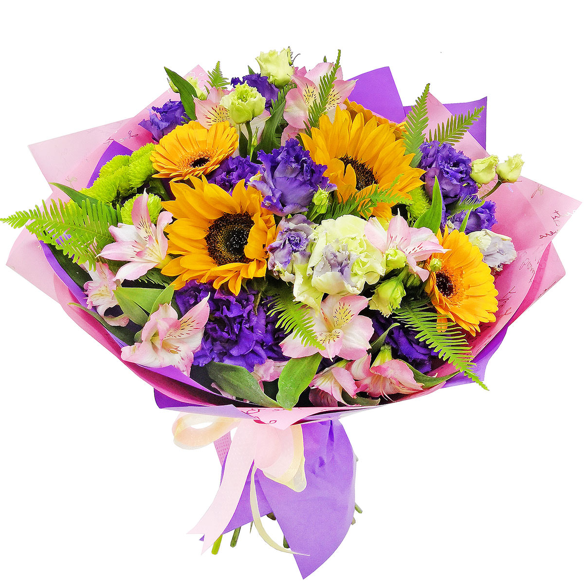 | Состав | Альстромерии, Кустовые розы, Подсолнухи, Розы, Хризантемы |