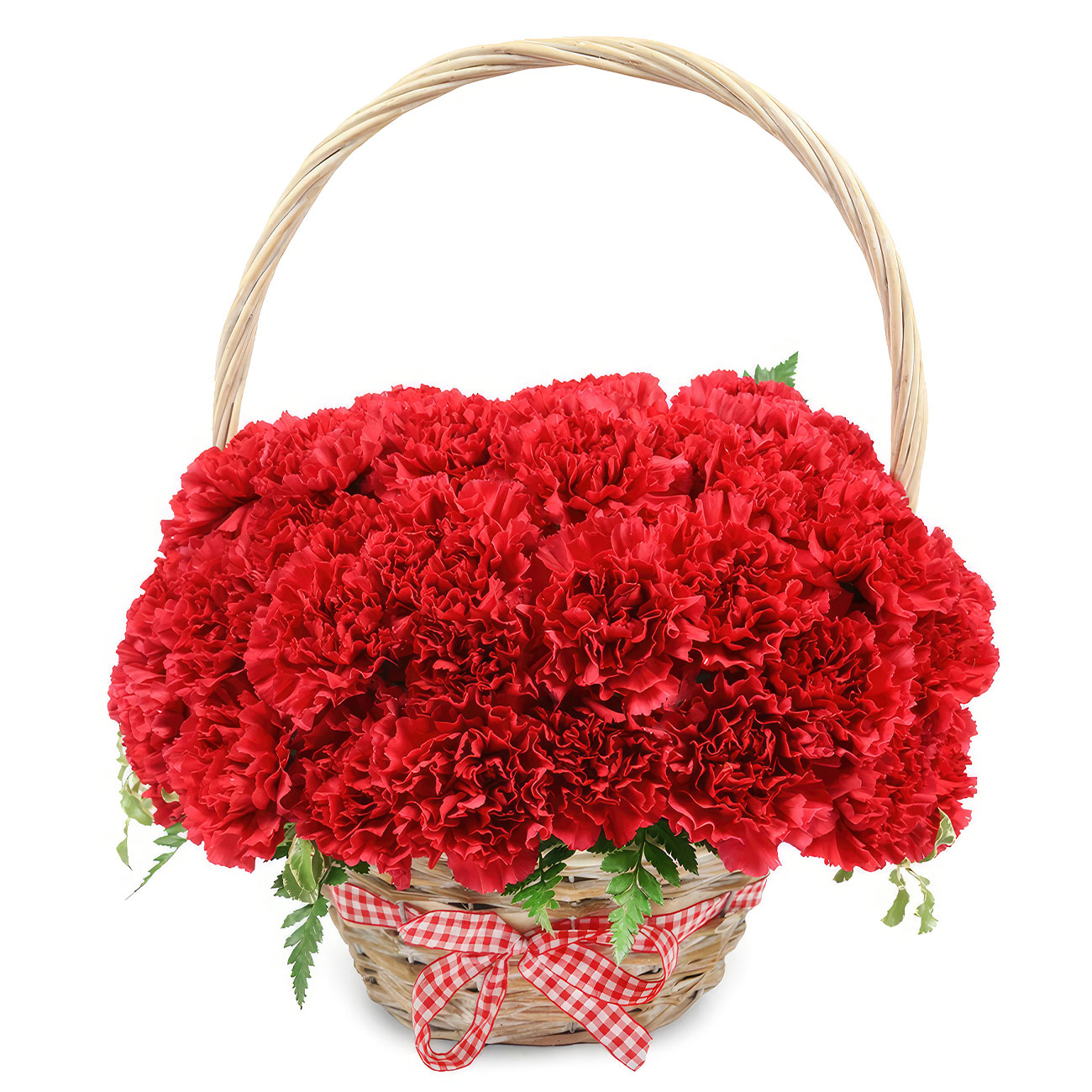Гвоздика красная. Упаковка (Корзина, оазис, ящик).