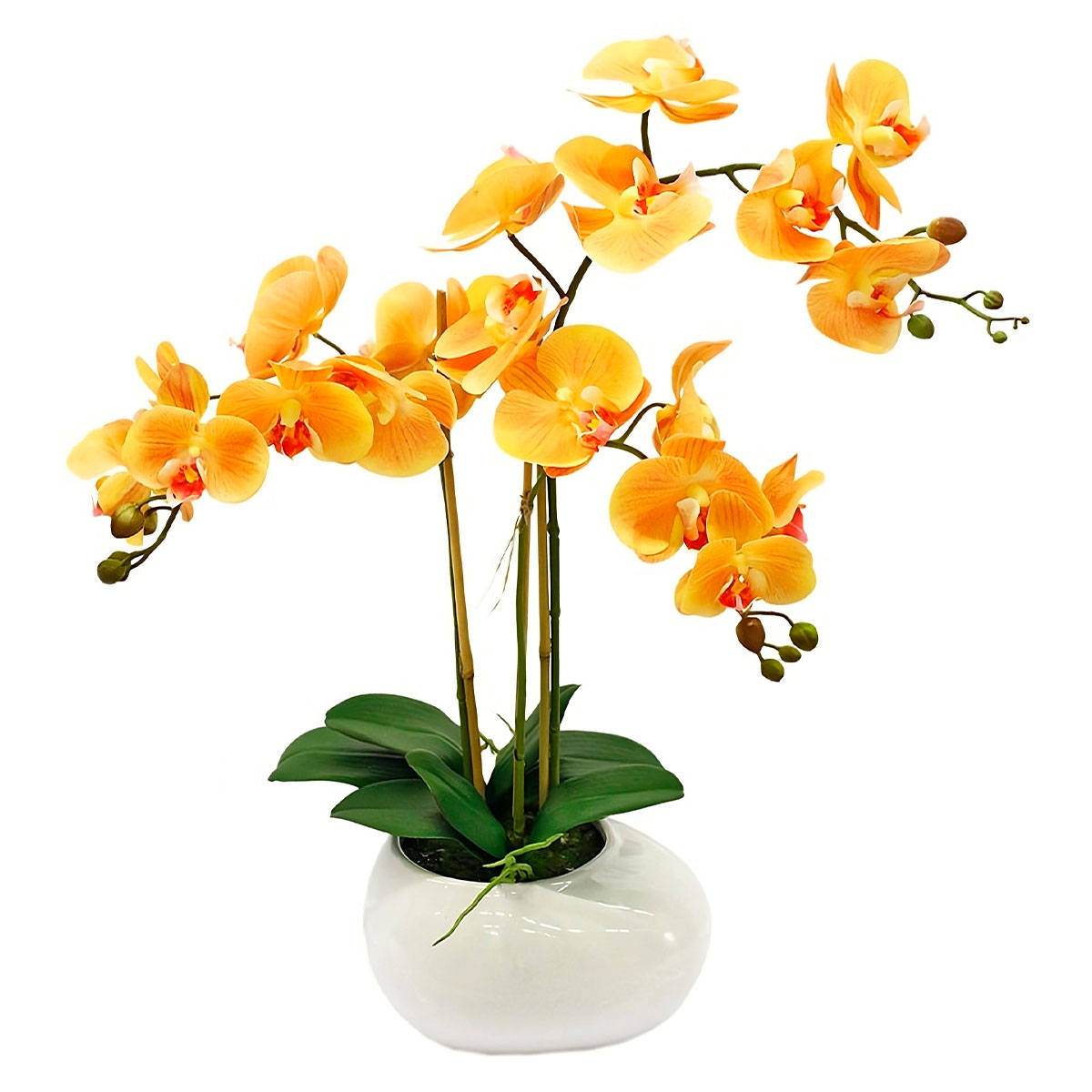 Орхидея в горшке «Темно-желтая» — это яркое и вдохновляющее растение, которое привнесет в ваше пространство тепло и радость. Сияющие темно-желтые цветы этой орхидеи искусно дополнят любой интерьер, придав ему нотку изысканности и экзотики. Эта орхидея — отличный подарок для любимых и близких, а также прекрасный выбор для оживления вашего дома или офиса своим неповторимым внешним видом.