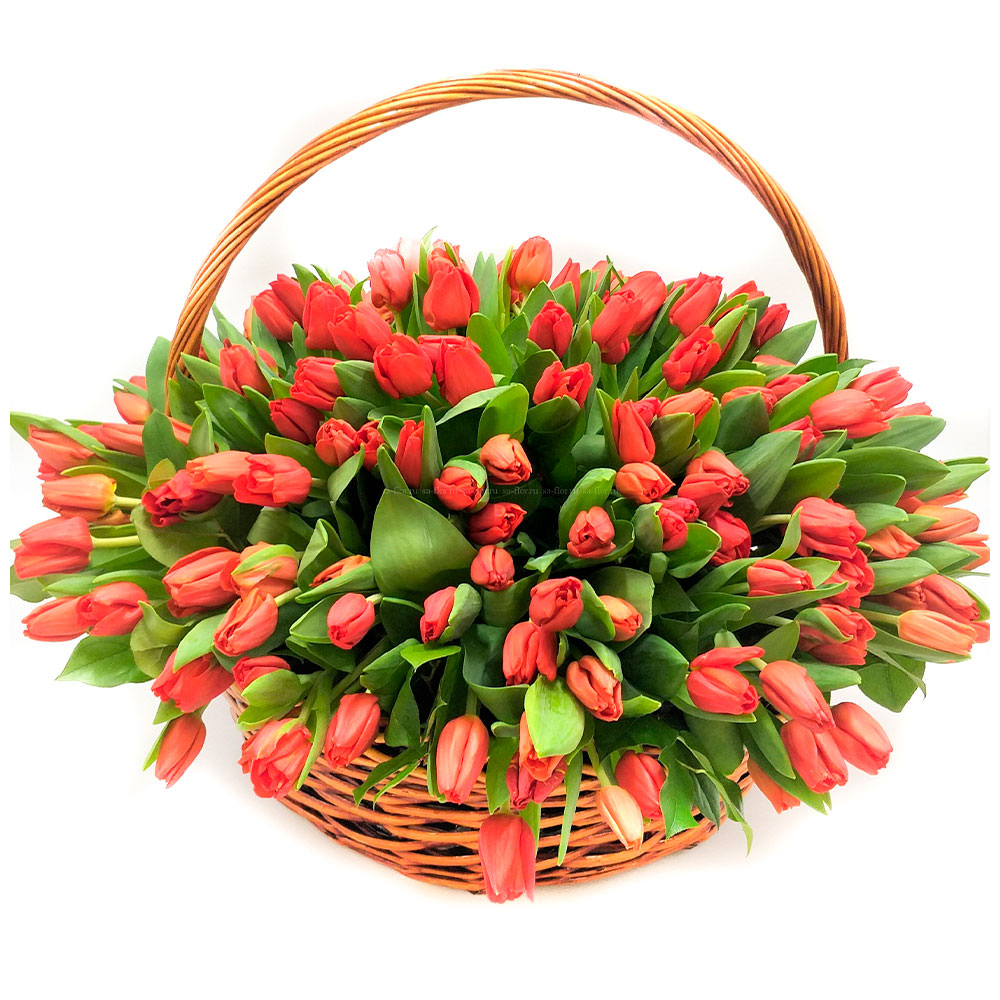 Цветы в корзинке «Красные тюльпаны» с доставкой по г Заречный (Свердловская обл): вы можете заказать букет в цветочном супермаркете «Флормания» по цене от 3890 руб.