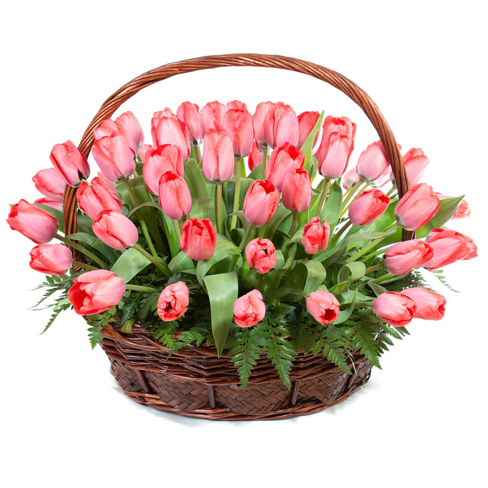 Цветы в корзинке «Розовые тюльпаны» с доставкой по г Заречный (Свердловская обл): вы можете купить букет в цветочном супермаркете «Флормания» по цене от 3890 руб.