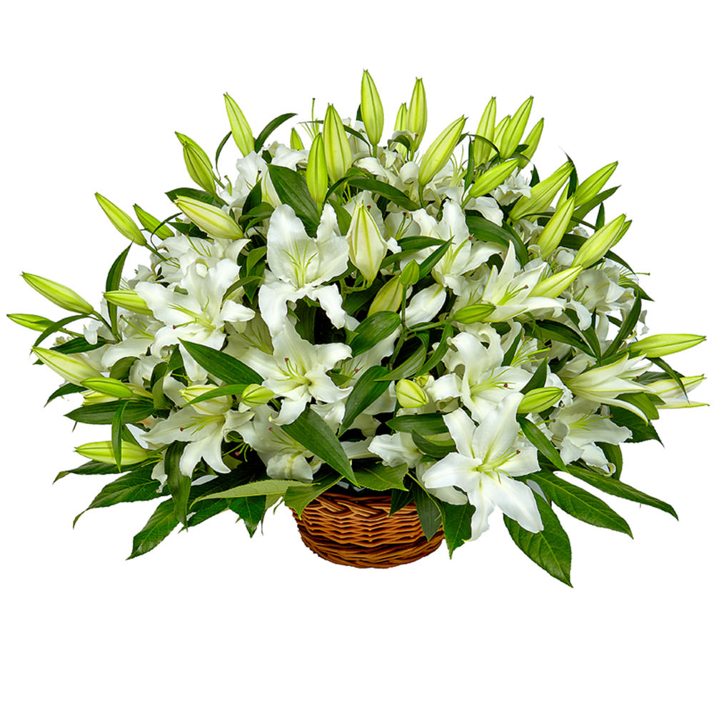 Лилия белая. Упаковка (Корзина, оазис).